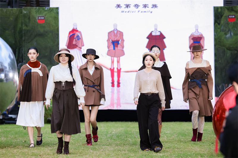 为鼓励创意与商业融合而特别设立的最佳人气奖,结合小红书平台人气与现场媒体评审意见,最终花落来自武汉纺织大学的朱清沁雅、安鑫琪及其作品《美第奇家族》。