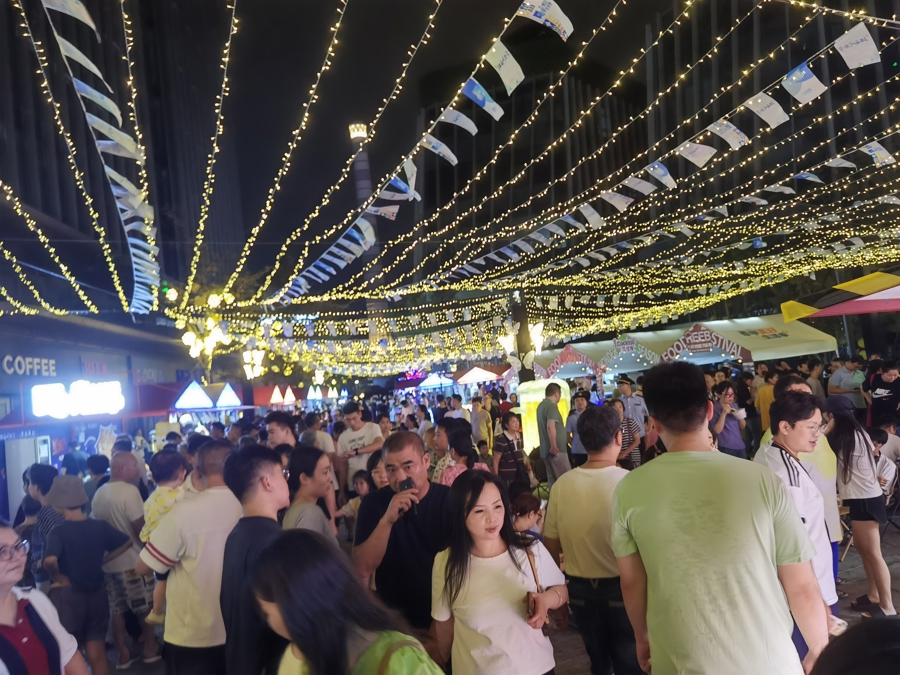 这几天,在闵行区江川路街道,夜晚的金平路成了“欢乐的海洋”,2公里步行街上人山人海、摩肩接踵,来自全国各地的美食摊位前热气腾腾,沪剧、滑稽戏、街舞表演、爵士乐队、百老汇音乐剧等演出轮番登场,为“大零号湾”呈上一场兼具烟火气和时尚感的街头嘉年华。